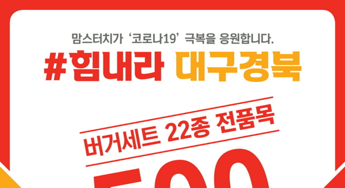 [인사이트] 김소영 기자 = 맘스터치가 다음 달 22일까지 대구경북 지역을 대상으로 버거 세트를 500원 할인하는 '#힘내라 대구경북' 프로모션을 진행한다고 26일 밝혔다.