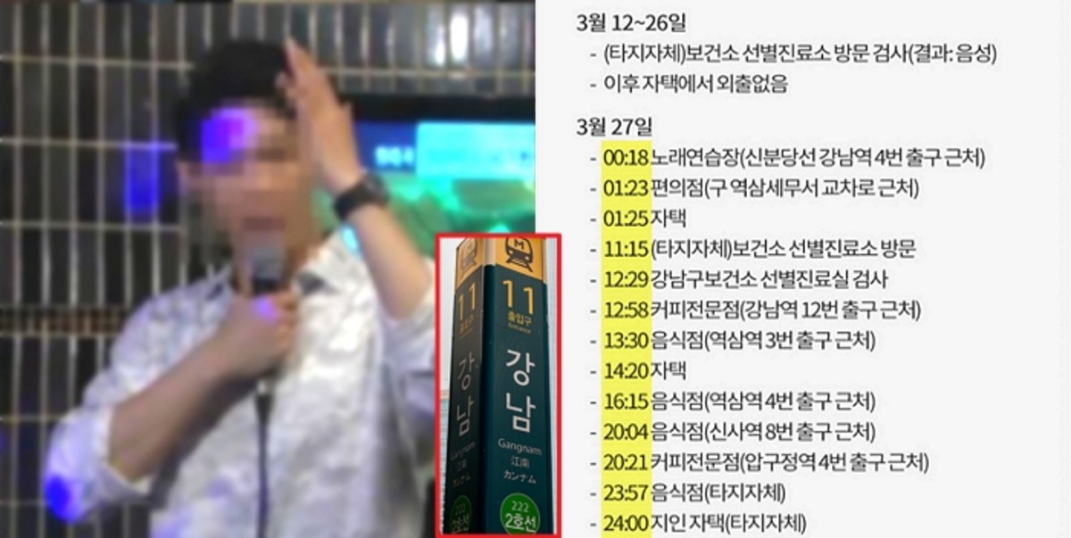 하지만 그는 새벽부터 집 밖을 나섰다. 자가격리 기간이 끝난지 18분 뒤인 새벽 12시 18분 그는 강남역 4번 출구 인근의 노래연습장으로 향했다. 새벽 1시 23분에는 편의점에 들렀다가 집으로 돌아왔다.