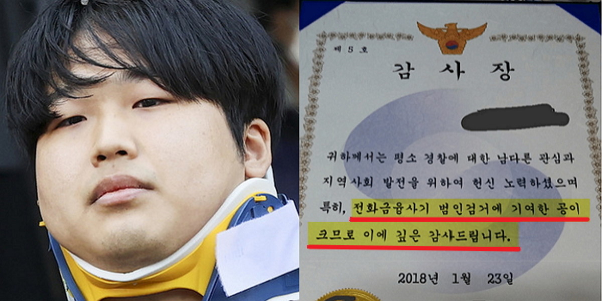 감사장엔 "평소 경찰에 대한 남다른 관심과 지역사회 발전을 위하여 헌신 노력했다"며 "특히 전화금융사기 범인 검거에 기여한 공이 크므로 이에 깊이 감사드린다"는 내용이 적혀 있었다.