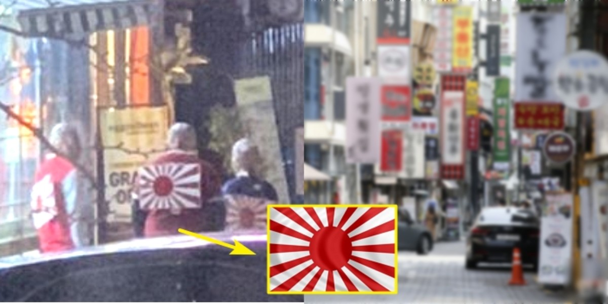 [인사이트] 한지혜 기자 = 서울 번화가 한복판에서 전범기를 걸고 다닌 성인 3명의 모습이 포착됐다.