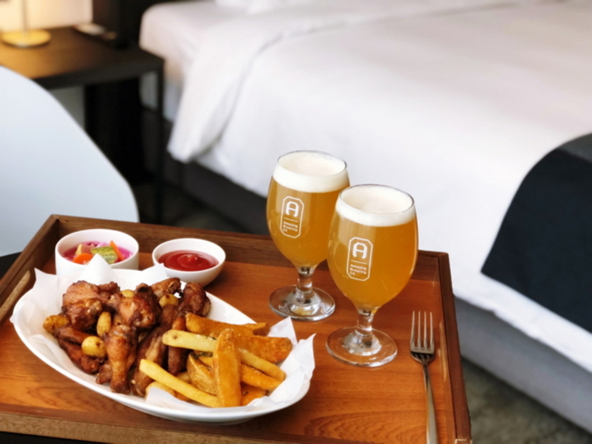 이번 패키지는 객실 1박, 호텔 셰프의 손맛으로 갓 구워진 데리야키 소스의 단짠단짠 치킨 윙, 바삭한 감자 튀김 세트가 기본으로 제공된다.