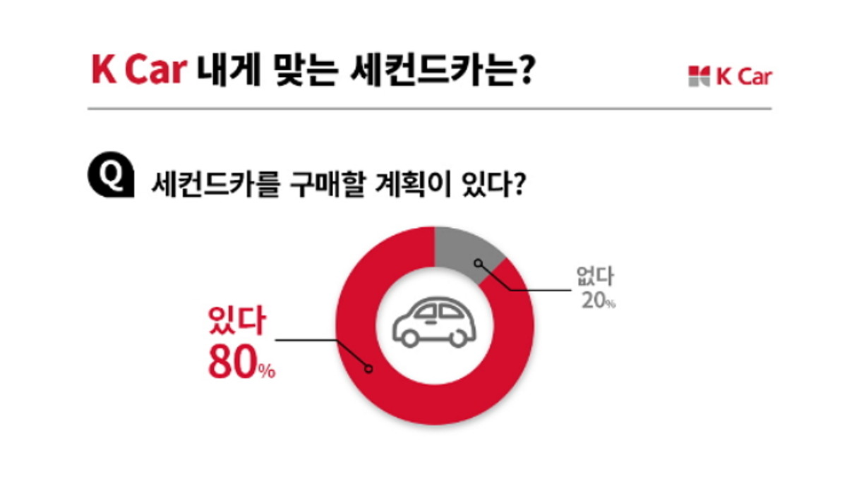 먼저 '올해 세컨드카를 구매할 계획이 있는가'라는 질문에 응답자의 80%가 '그렇다'라고 답해 세컨드카에 대한 잠재적 수요가 높은 것으로 나타났다.