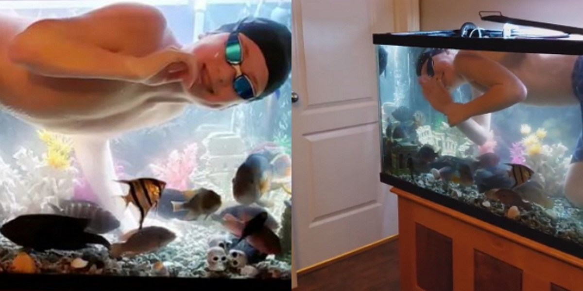 지난 1일(현지 시간) 캐나다 'CBC뉴스'는 코로나19로 수영장을 이용하지 못하자 아버지의 수족관에 뛰어든 소년의 사연을 전했다.