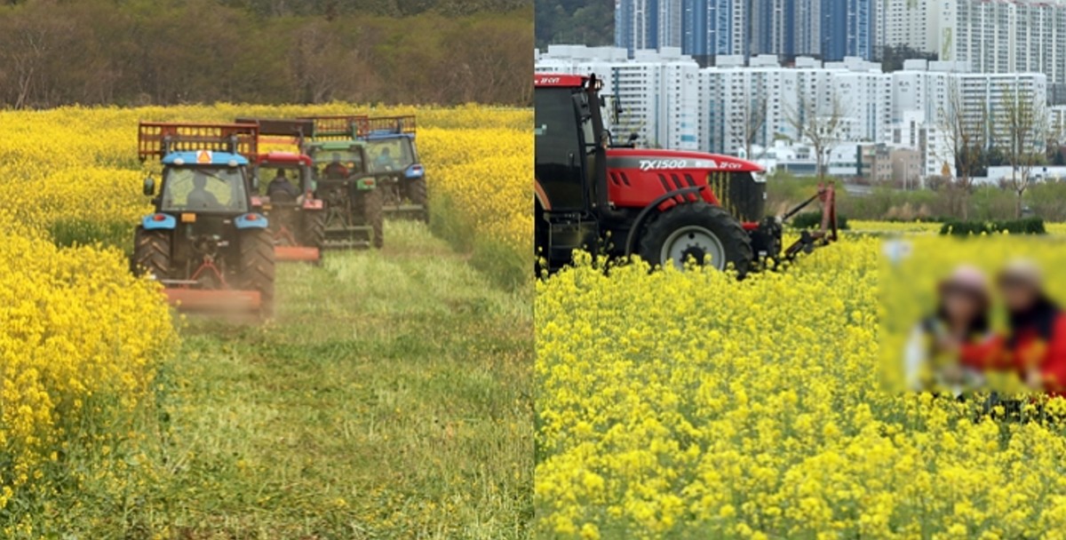 지난 8일 서귀포시는 가시리에 조성된 9.5ha 규모의 유채꽃 광장과 녹산로 주변에 심긴 유채꽃들을 전량 파쇄했다고 밝혔다.