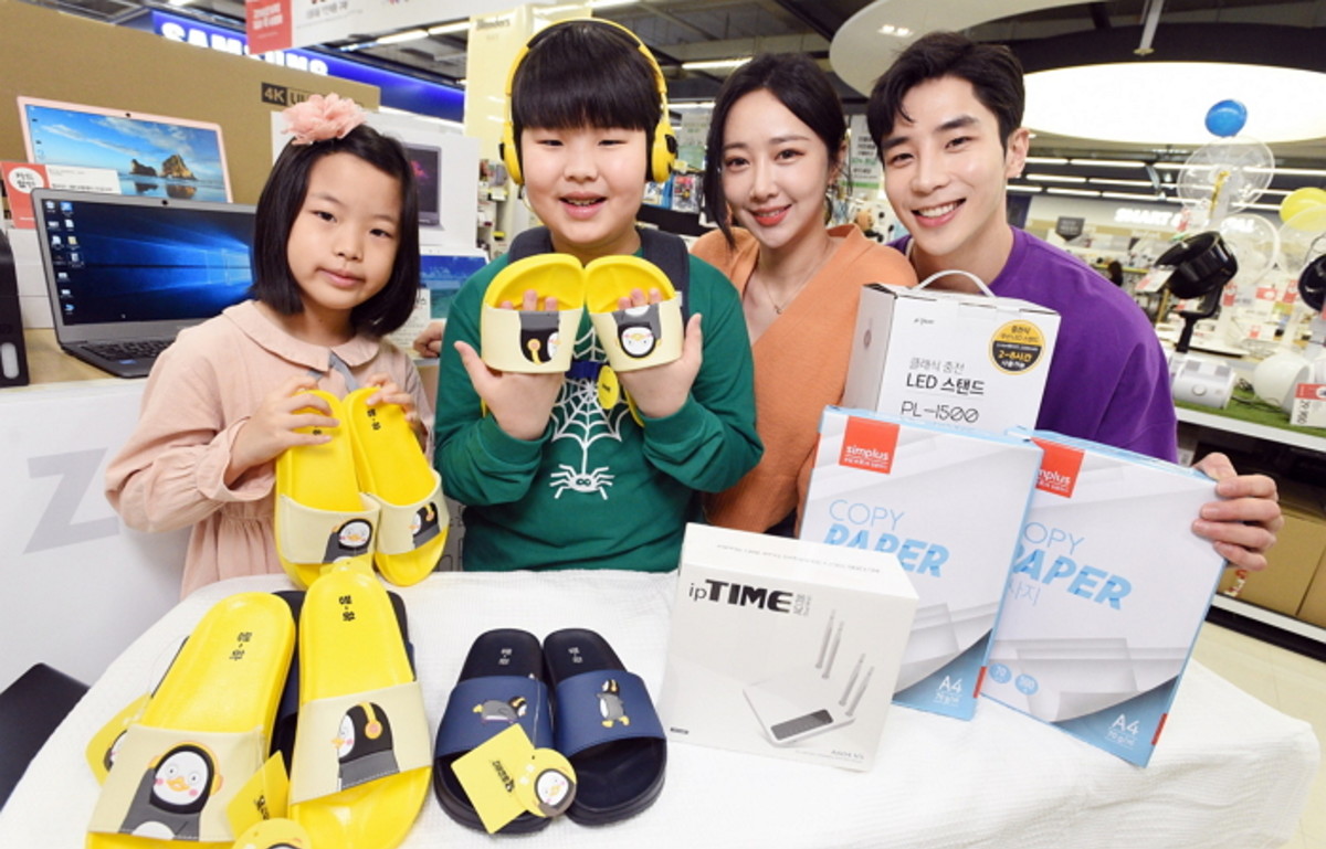 인기 캐릭터 펭수 양말(5족)과 슬리퍼 각각 9990원, 1만9990원, 카카오·베네통·라인프렌즈 캐릭터 실내화는 각 9990원에 판매하며, 실내화·슬리퍼(각 3990원~1만9990원)는 2개 구매 시 20% 할인, 빅키드 학생가방은 최대 30% 할인 판매한다.