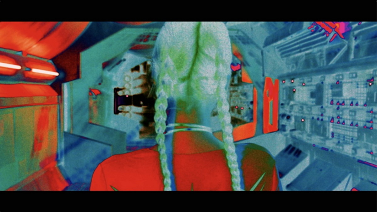 강렬한 사운드와 함께 등장한 이 아티스트는 우주선이 연상되는 듯한 공간에서 리듬을 타고 있으며, 짧게 비춰지는 뒷모습만으로도 카리스마 넘치는 면모를 보여주고 있다.