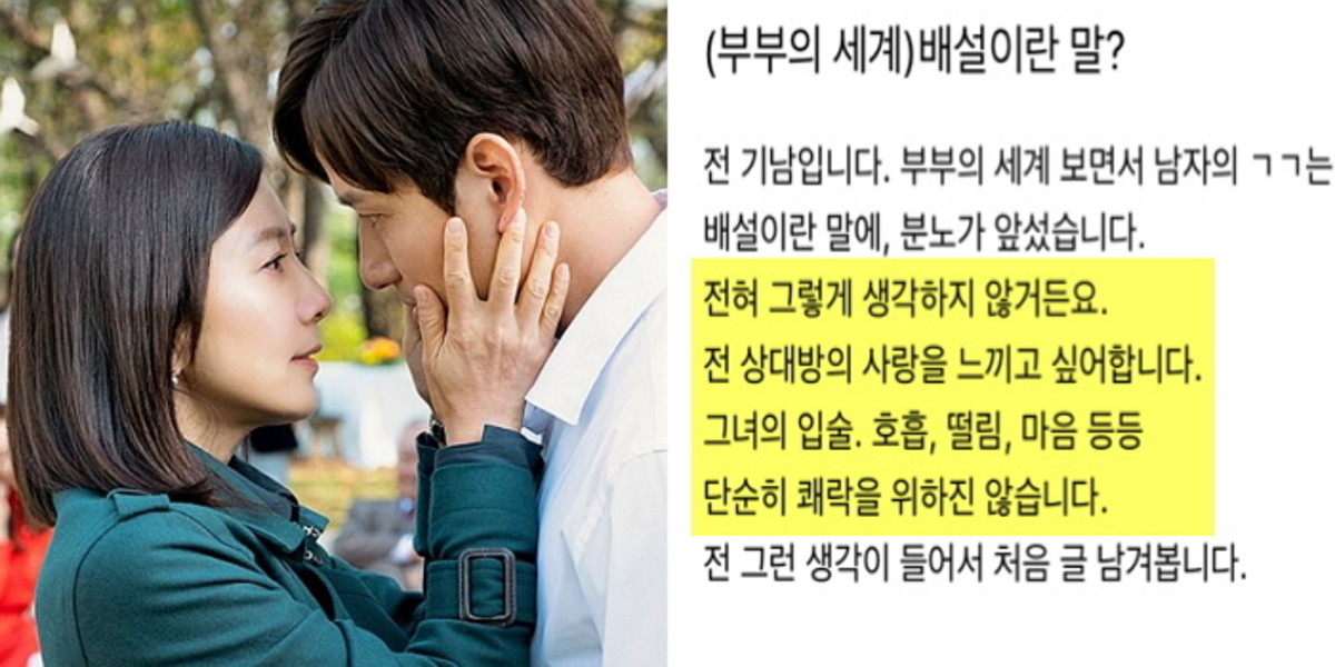 한 이용자는 자신을 불륜남이라고 자처하면서 "남자의 외도가 배설이라는 말을 듣고 분노했다"라면서 "나는 그렇게 생각하지 않으며, 상대방의 사랑을 느끼고 싶어 한다"라고 말했다.