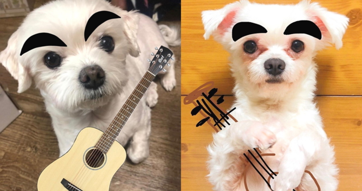 귀여운 댕댕이에게 진한 짱구 눈썹을 그려주고 통기타를 살포시 쥐여 준 이 사진들은 모두 합성을 통해 만든 것이다.