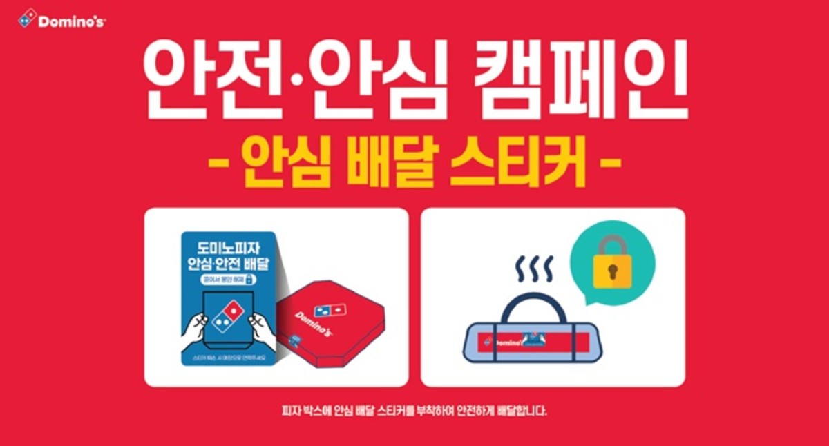 도미노피자의 '안심 배달 스티커'는 피자 박스와 치킨 사이드박스에 안심 스티커를 부착해 주문한 제품이 고객에게 안전하게 도착할 수 있도록 한 서비스이다.