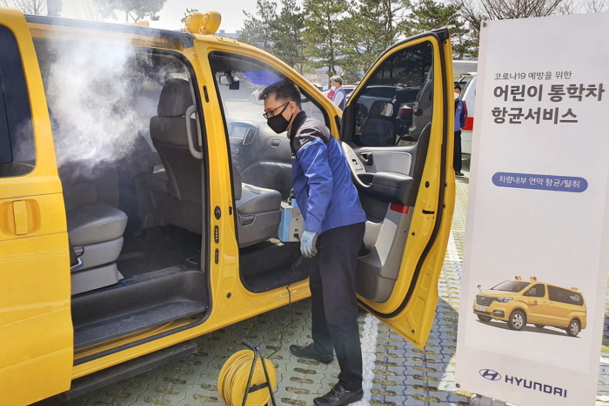 어린이집과 유치원 통학차량으로 현대차 스타렉스, 카운티 등을 사용하고 있는 고객들은 어린이집과 유치원 주차장 및 인근 대형 주차장에서 무상으로 차량 실내에 항균 서비스를 받을 수 있다.