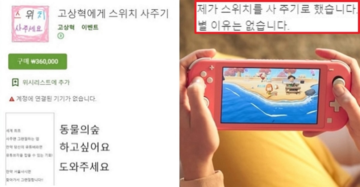 '고상혁에게 스위치 사주기'라는 이름의 앱으로, 36만원에 판매되고 있다.