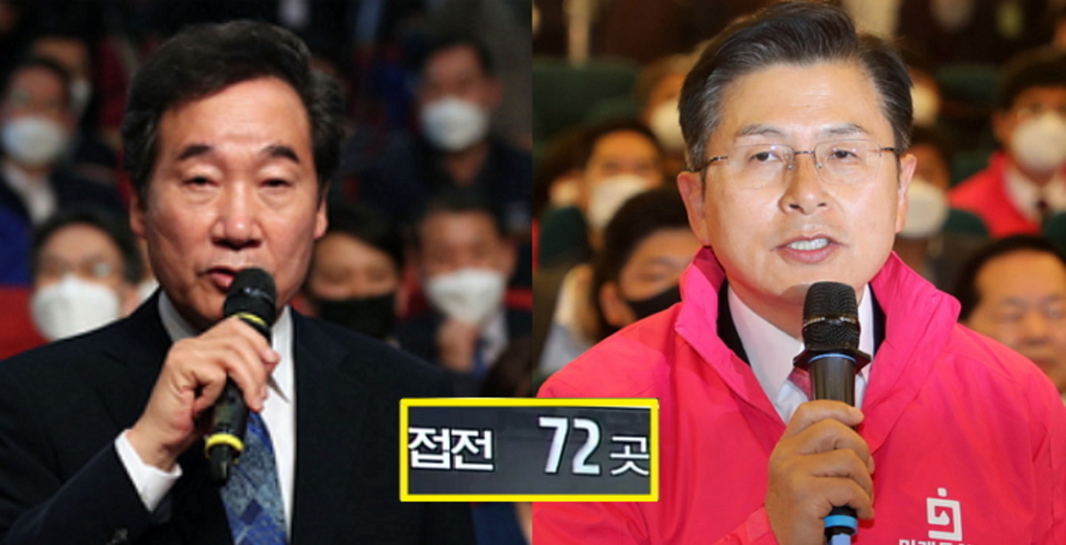 전국 253곳의 지역구 중 접전지역이 30%에 달하는 72곳인 것으로 드러났다.