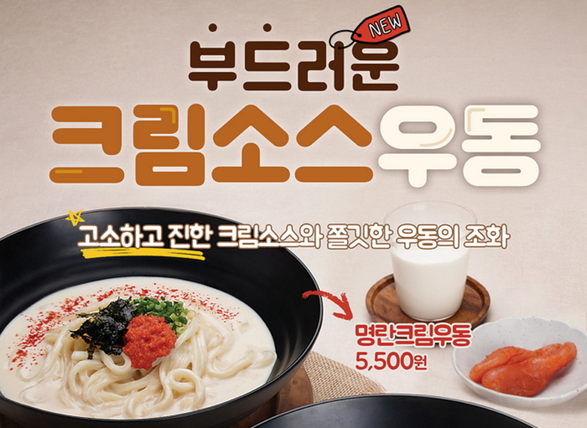 크림소스우동 2종은 전국 역전우동 직·가맹점에서 만나볼 수 있으며, 가격은 '크림우동'이 5천원, '명란크림우동'이 5천 5백원이다.