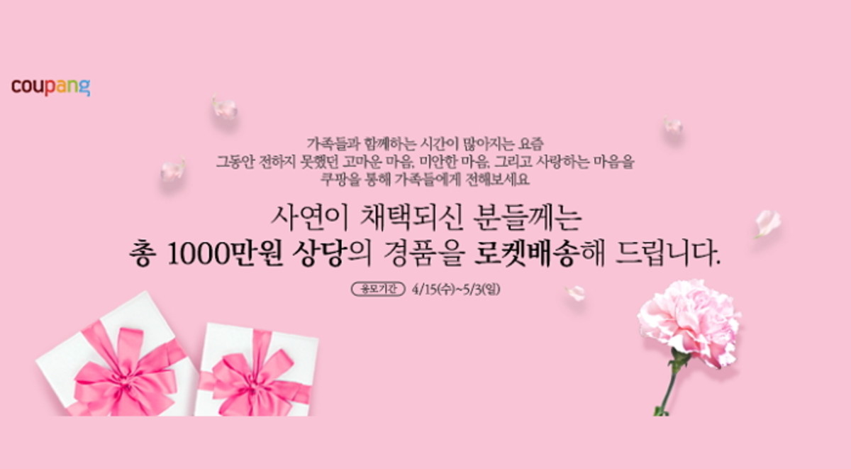 [인사이트] 김소영 기자 = 쿠팡은 다음 달 3일까지 '가정의달 고객 사연 응모 이벤트'를 진행한다고 20일 밝혔다.