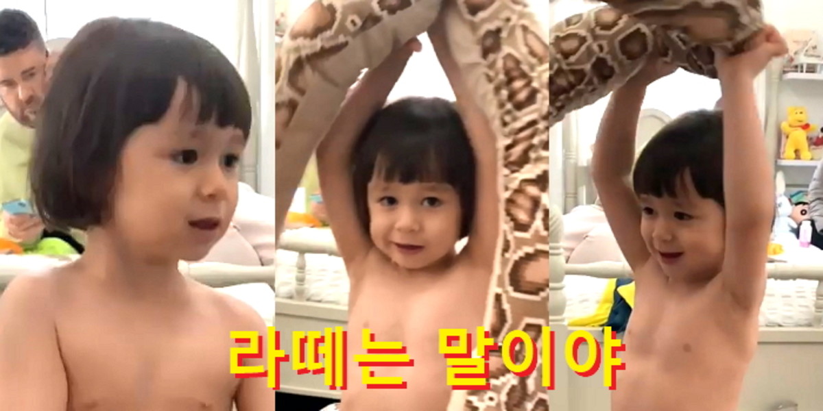 뽀얀 속살을 고스란히 드러낸 윌리엄은 자기 키보다 큰 뱀 인형을 잡고 머리 위로 휘둘렀다.