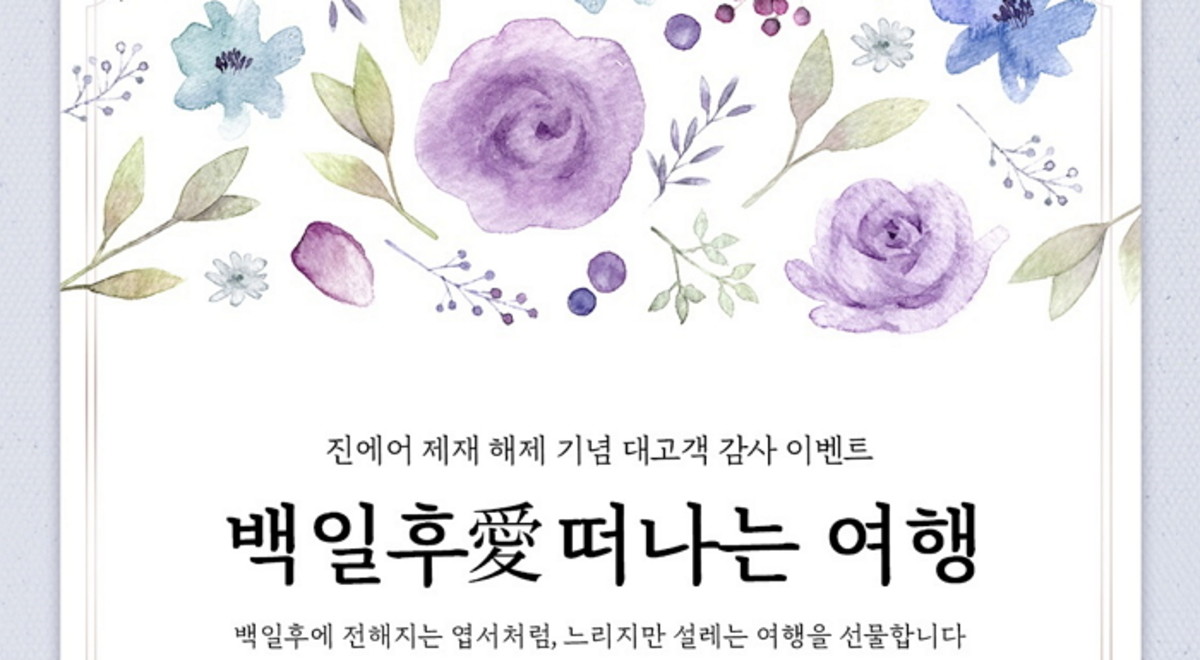 [인사이트] 김한솔 기자 = 진에어가 그동안 아낌없는 사랑을 보내준 고객들에게 감사 인사를 전하기 위해 '백일후愛 떠나는 여행' 이벤트를 다음달 3일까지 진행한다.
