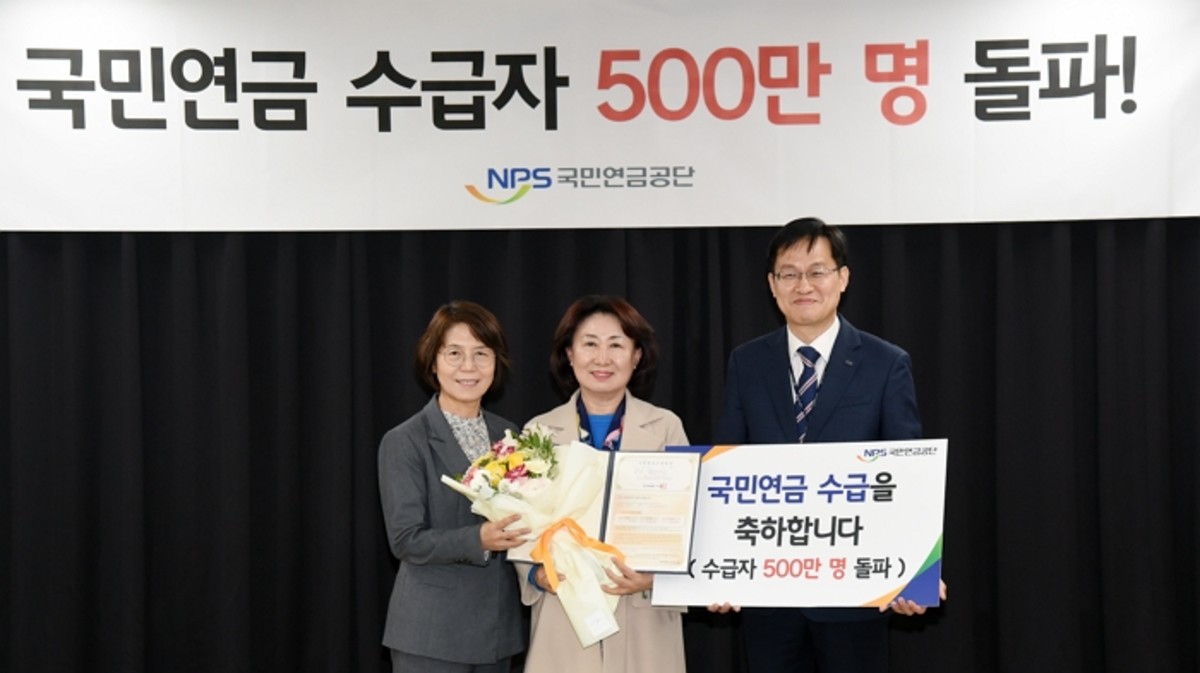 한편, 공단은 지난 20일 연금수급자 500만 명 돌파를 기념해 '500만 번째 수급자'로 선정된 명정희(62세) 씨에게 국민연금 수급증서 및 기념품을 전달했다.
