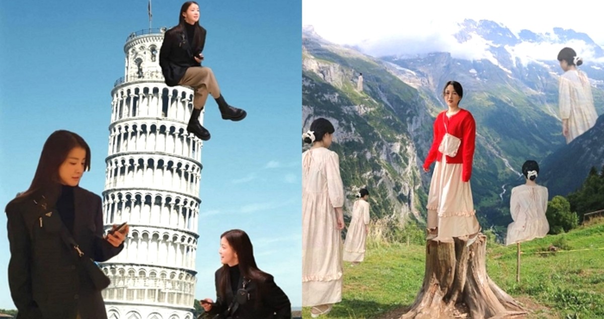 하지만 자세히 살펴보면 이 모든 사진은 모두 합성으로 만들어진 여행 인증샷이었다. 자세히 보면 합성한 티가 많이 나 웃음을 주고 있다.