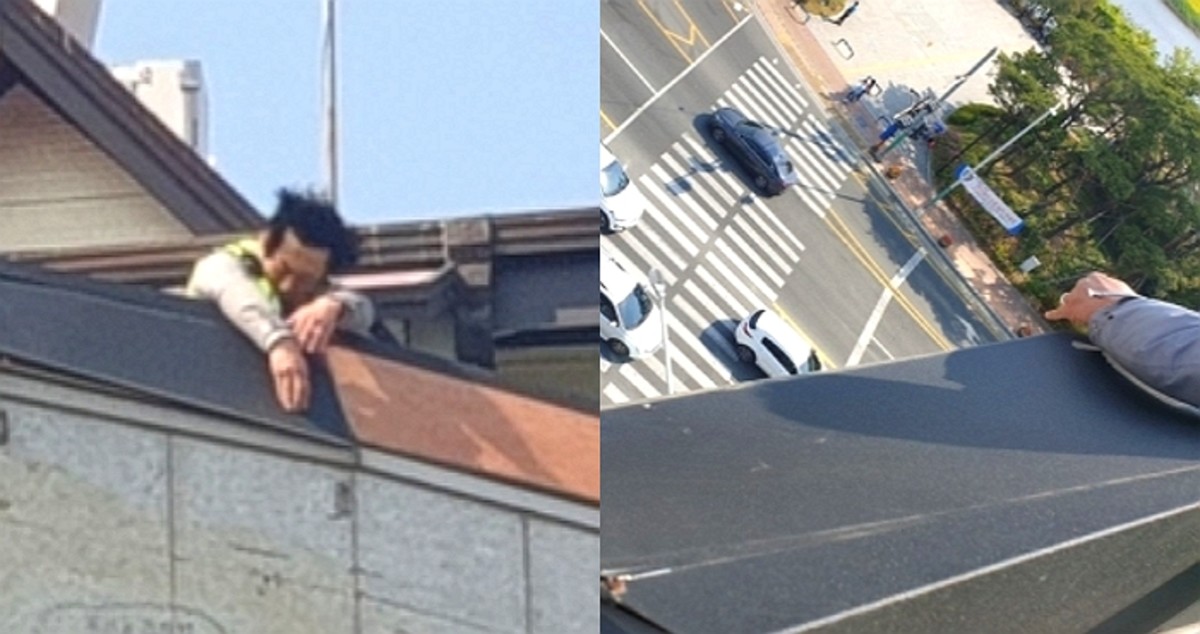 이때 인근에서 교통지도를 하고 있던 경찰 3명이 이를 발견하고 서둘러 건물 위로 뛰어 올라갔다.