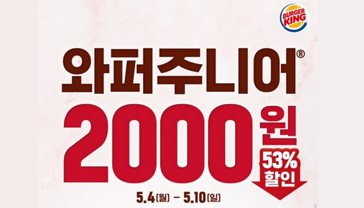 [인사이트] 천소진 기자 = 버거킹이 오는 10일까지 와퍼주니어와 불고기와퍼주니어 단품을 53% 할인된 2,000원에 판매하는 프로모션을 실시한다고 밝혔다.