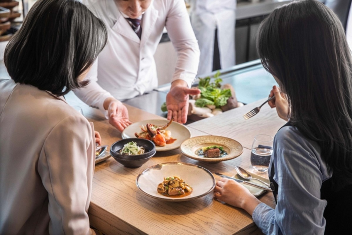 최고급 알마스 캐비어와 고구마를 얇게 한겹씩 쌓아 올려 식감과 풍미를 더한 한우 타르타르를 시작으로, 철판에 구워 당도를 한층 더 높인 대저 토마토와 지리산 흑돼지를 직접 구워 만든 베이컨을 석류 식초 드레싱과 함께 제공하는 고소하면서 상큼한 샐러드가 준비돼 있다.