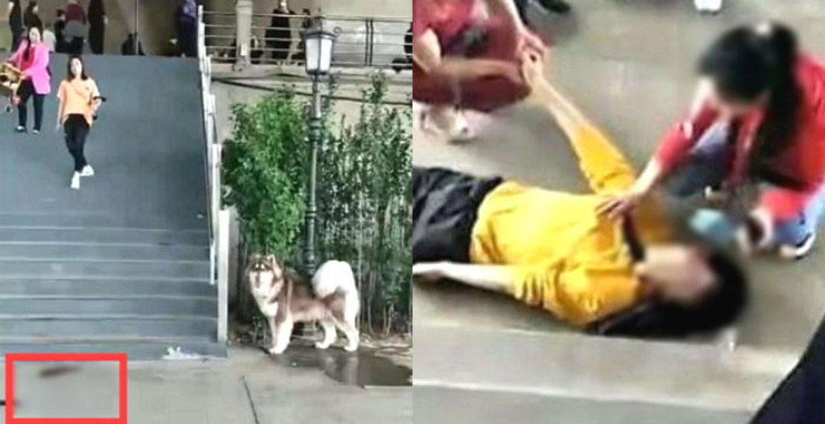 A씨가 흥분한 말라뮤트를 말리는 과정에서 끌려가다가 목줄에 걸려 수십 개의 계단을 굴러떨어진 것이다.