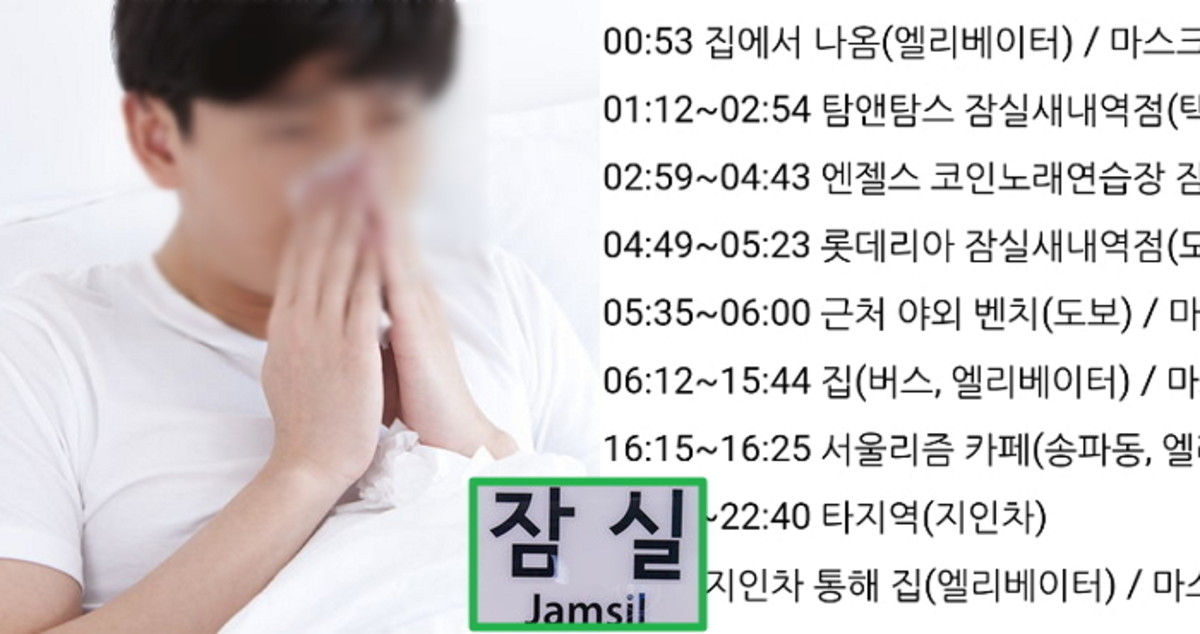 역학조사 결과 확인된 동선을 살펴보면 이 남성은 지난 5일 마스크를 착용하지 않은 채 탐앤탐스 잠실새내역점, 엔젤스 코인노래연습장 잠실신천점, 롯데리아 잠실새내역점, 카페 서울리즘 등을 다녔다.