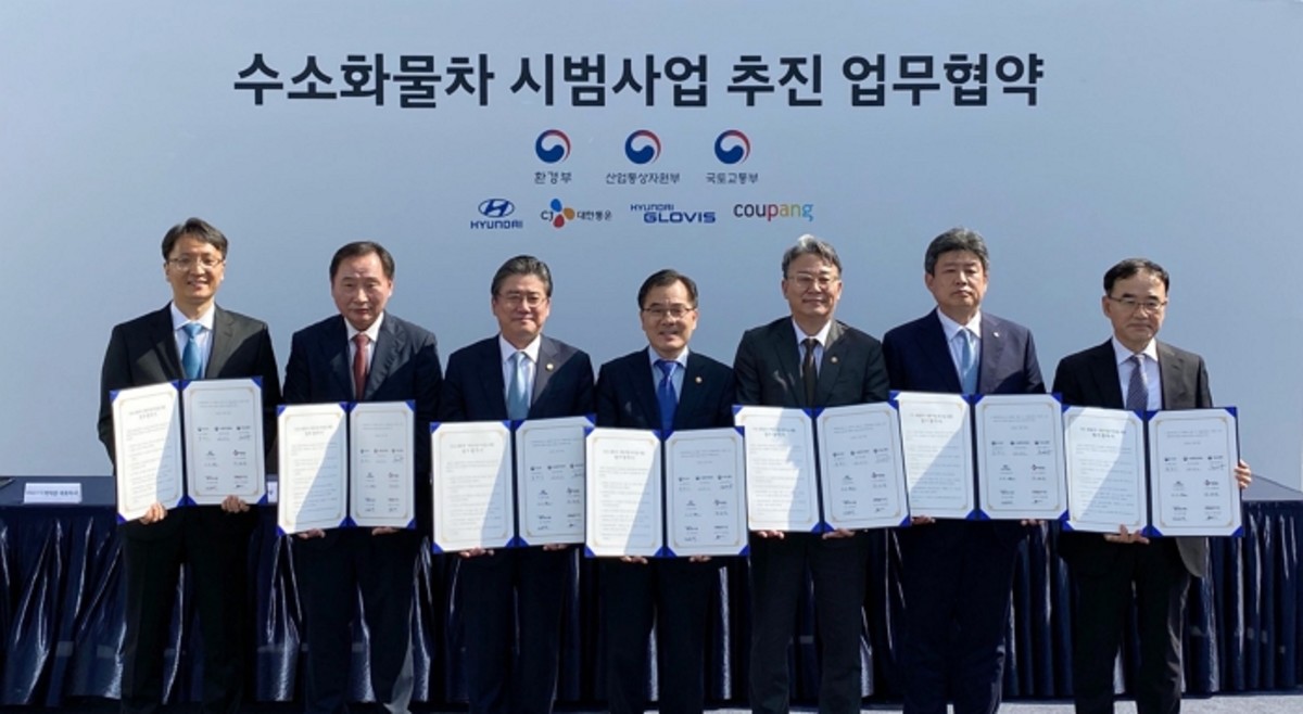 [인사이트] 김소영 기자 = 쿠팡은 20일 충북 옥천에서 환경부, 산업통상자원부, 국토교통부를 비롯해 현대자동차 등과 '수소화물차 시범사업 추진을 위한 업무협약'을 체결했다고 밝혔다.