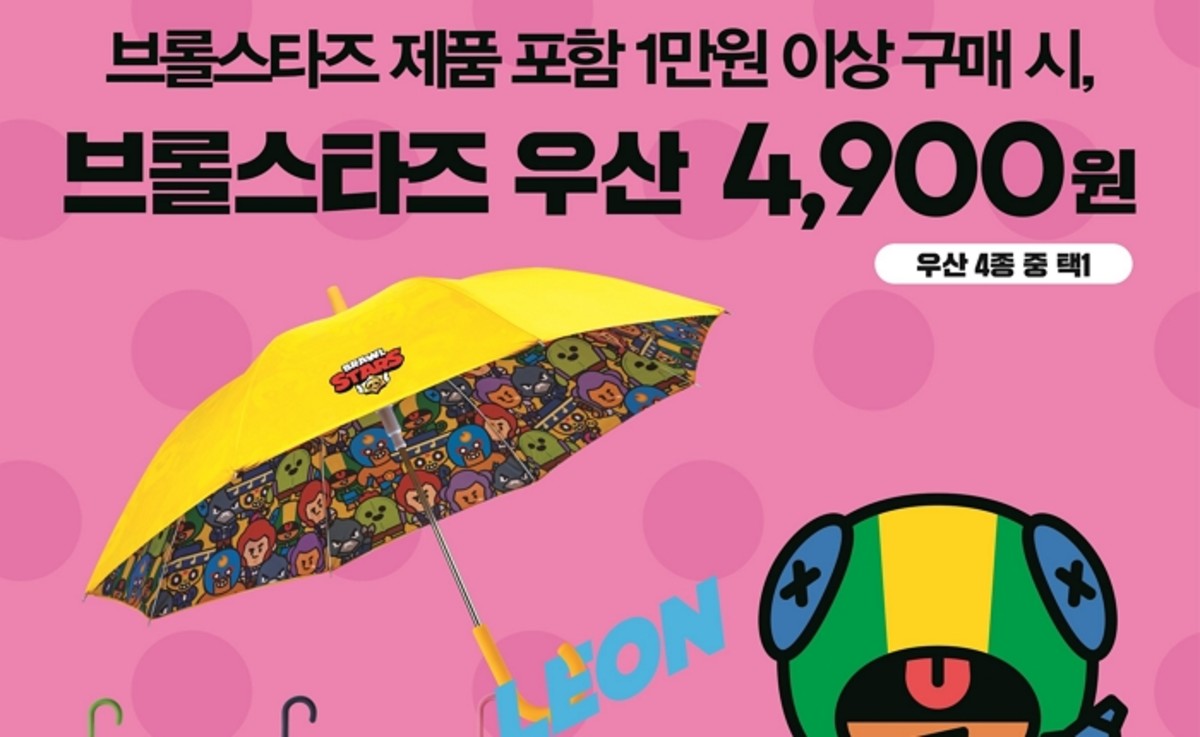 이번 행사는 상품 소진 시 자동 종료되고, 영수증 한 개당 '브롤스타즈 우산' 한 개만 구매 가능하다. 우산 개별 구매 및 타 쿠폰, 행사, 제휴 할인 중복 참여는 불가하다.