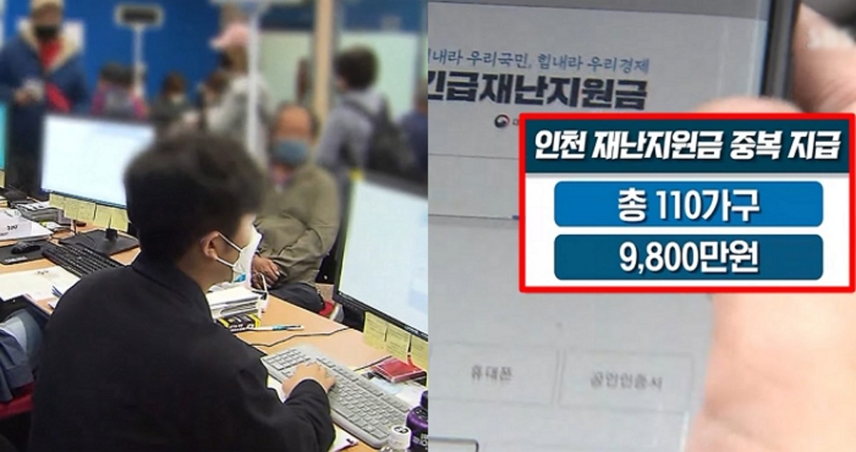 23일 SBS '8뉴스'는 인천에서만 110가구에 재난지원금이 중복으로 지급됐으며 다른 지자체도 이러한 사례가 있는지 정부가 파악 중이라고 보도했다.