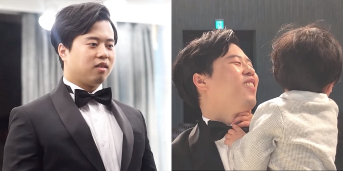 영상에서 아이엠엄빠는 한 웨딩홀에 갔다. 멋진 턱시도에 넥타이까지 맸으며, 버진로드를 가로질러 식장에 들어섰다.