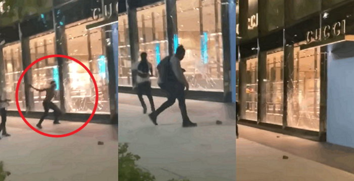 영상 속에서 흑인 남성들은 매장 안에 진입하기 위해 돌을 가지고 와 유리에 내리치기 시작했다.