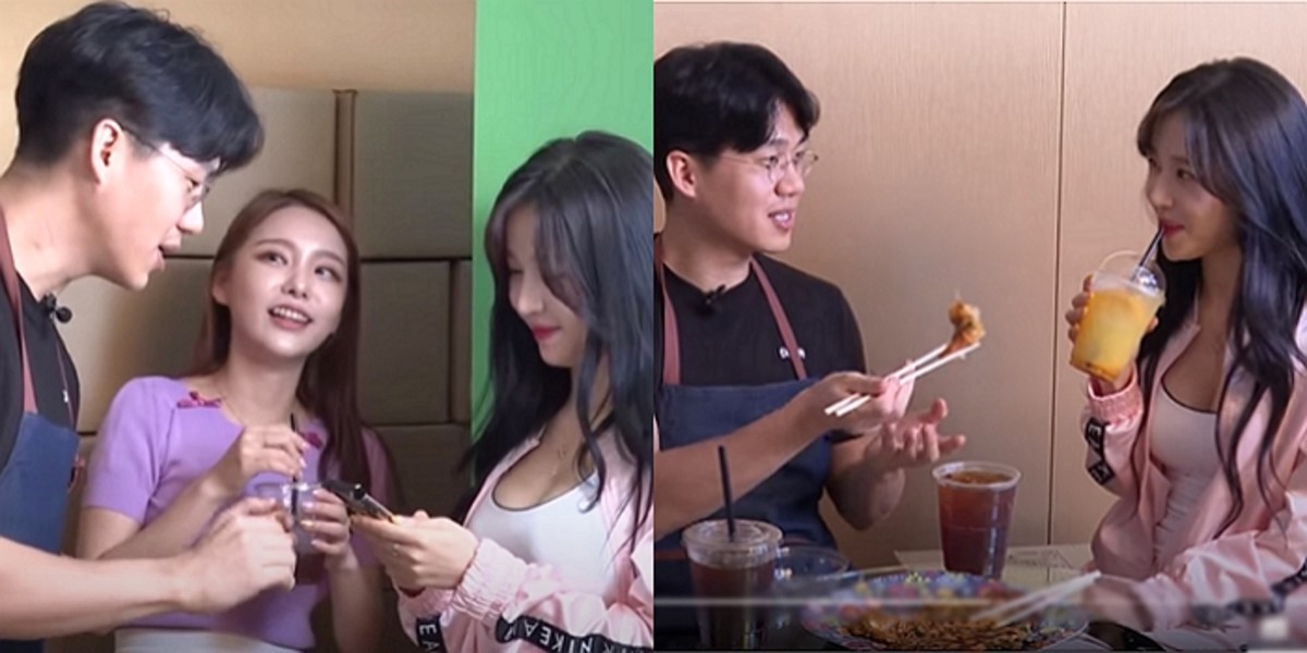 보겸이 두 여자를 앞에 두고 엘린에게 먼저 음식을 먹여주려 하자 츄정은 이를 질투의(?) 눈빛으로 응시했다.