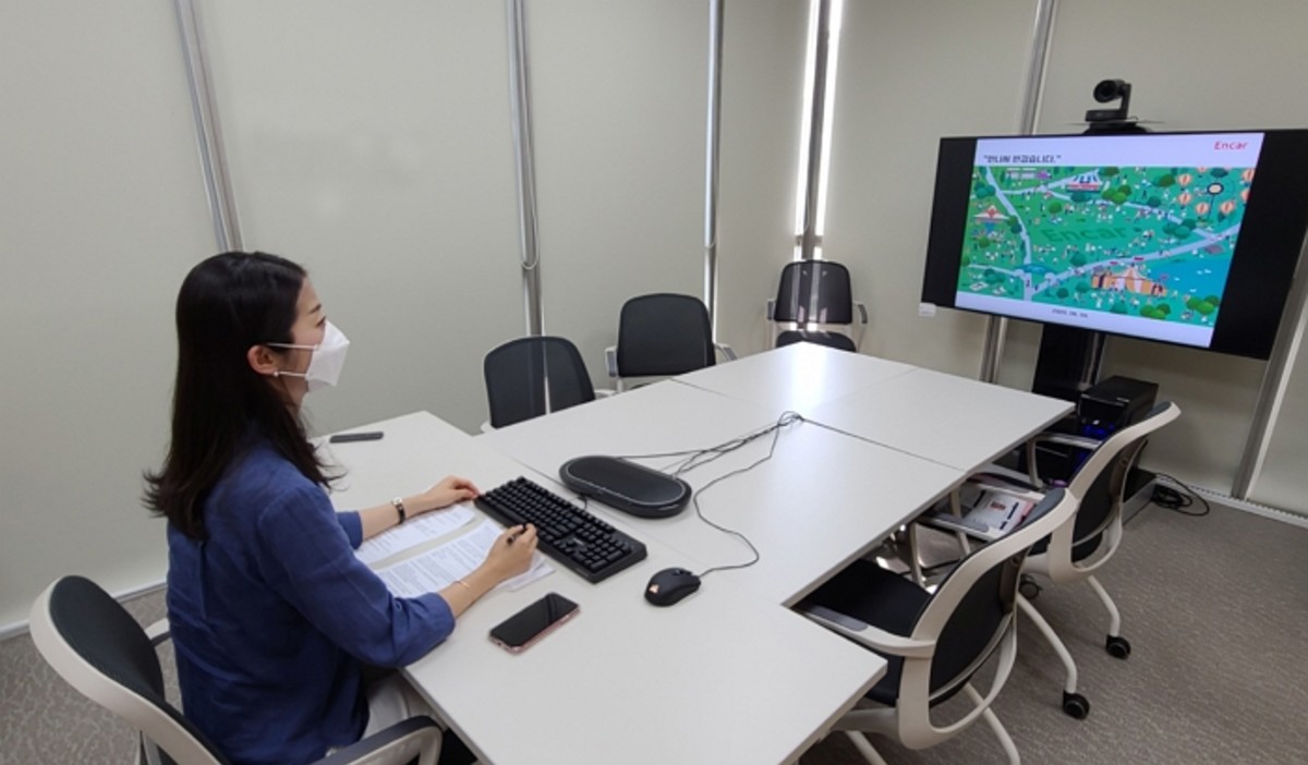 9일 참가한 엔카닷컴은 코트라 본사 2층 화상상담장에서 오후 4시부터 기업 채용 정책을 발표했다.
