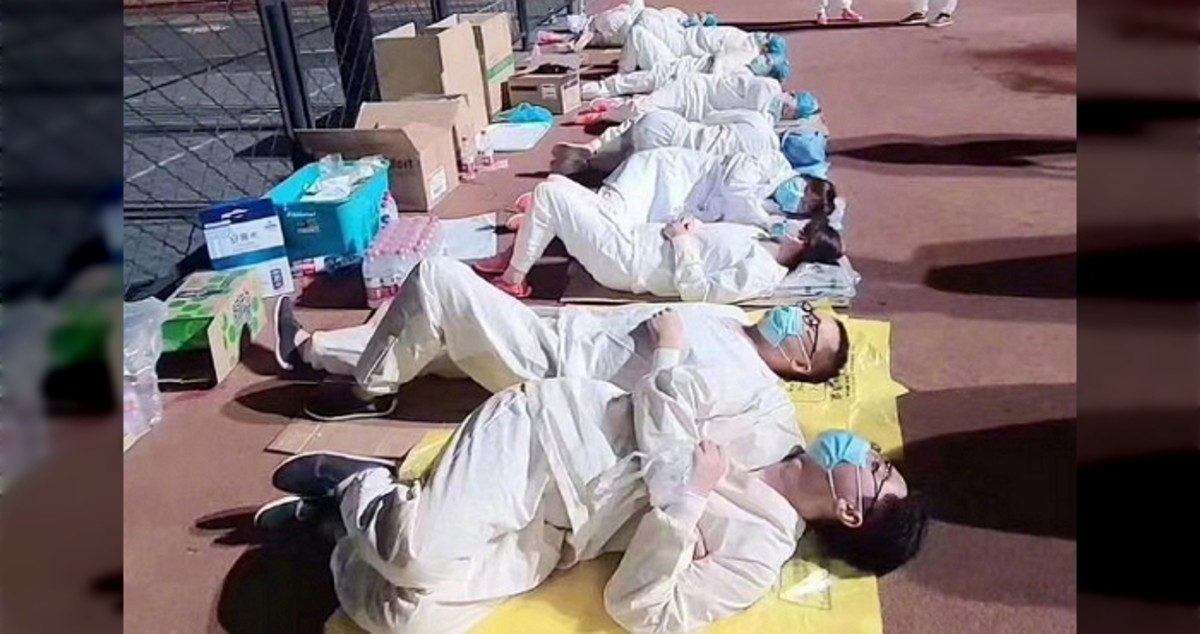 지난 16일(이하 현지 시간) 중국 웨이보(weibo) 계정 '华笠医生'에는 쓰레기봉투에 몸을 기댄 채 잠깐의 휴식을 취하는 북경대학교 제1병원 의료진들의 모습이 올라왔다.