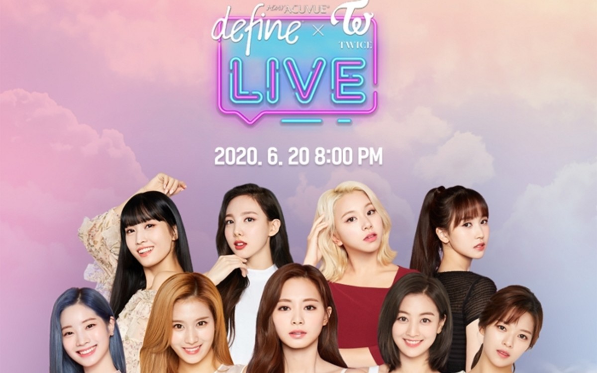 아큐브가 준비한 일명 '디파인X트와이스 방구석 라이브'에서 트와이스는 최신 타이틀곡 'MORE & MORE'를 비롯해 특유의 신나는 곡들을 선보이며 코로나19로 집콕 중인 이들의 흥을 돋울 예정이다.