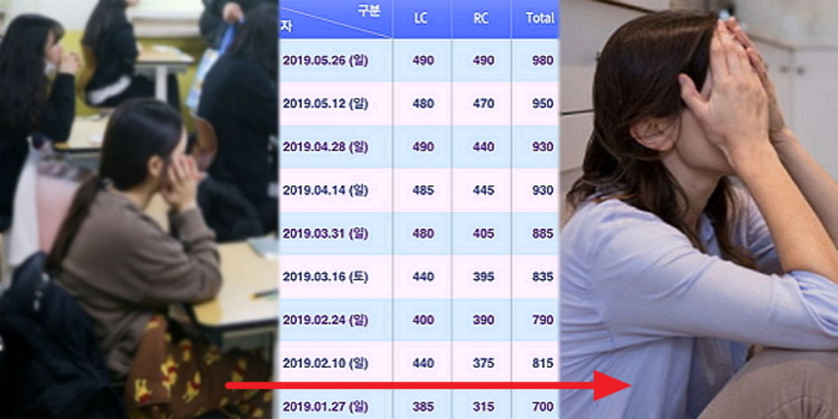 글쓴이 A씨는 "인천국제공항공사 채용 시험 합격을 위해 10번의 토익 시험과 8번의 토익스피킹 시험을 봤다"면서 5개월 만에 700점에서 950점까지 올린 자신의 토익 시험 성적표를 공개했다.