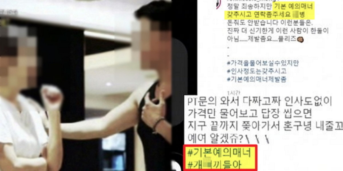 [인사이트] 김남하 기자 = PT 비용을 문의한 고객을 향해 '염X', '개X끼' 등의 욕설을 날리며 화를 낸 헬스 트레이너가 논란이다.