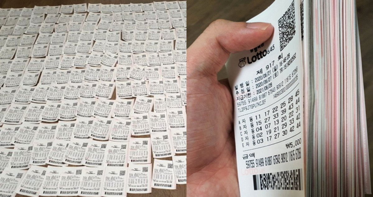 그가 올린 캡처 사진에는 '로또 6/45 제917회', '추첨일 2020/06/27' 등의 문구가 새겨진 로또가 가득했다.