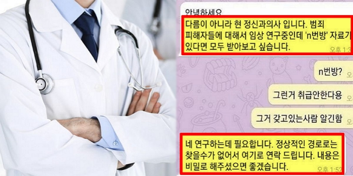 이러한 가운데 현직 정신과 의사로 추정되는 인물이 'n번방 풀영상' 구매를 시도하는 내용이 담긴 대화창 캡처 사진이 최근 다수의 온라인 커뮤니티에서 공유되면서 논란이 일고 있다.