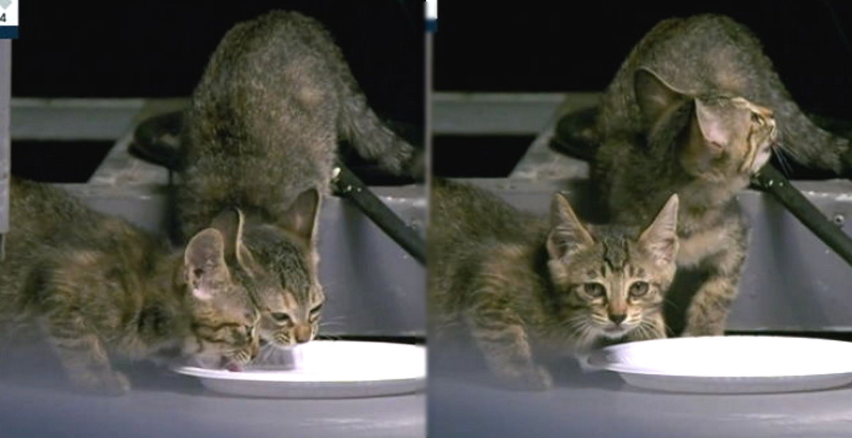 중계 카메라에 고양이 두 마리가 포착된 것. 녀석들은 누군가 놓아준 그릇에 담긴 물을 '찹찹' 먹으며 여유를 즐겼다.