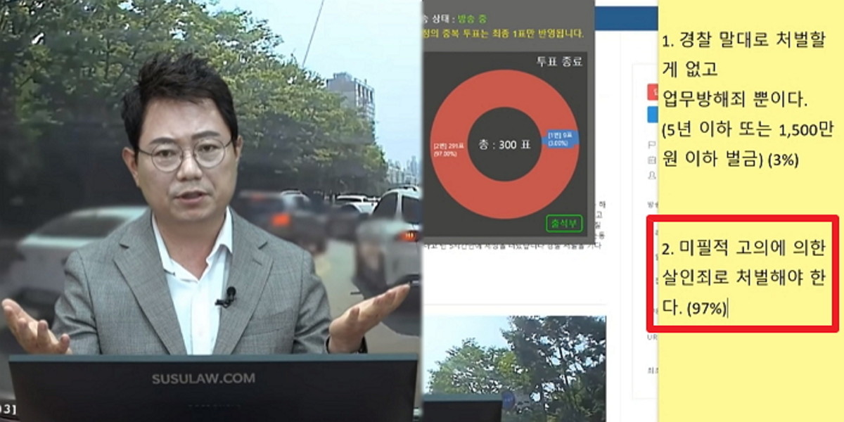한 변호사는 "'미필적 고의에 의한 살인죄' 적용 가능성을 시사했다. 택시 기사가 "죽으면 내가 책임질게"라고 두 번 이상 자신 있게 말한 부분을 근거로 들었다.