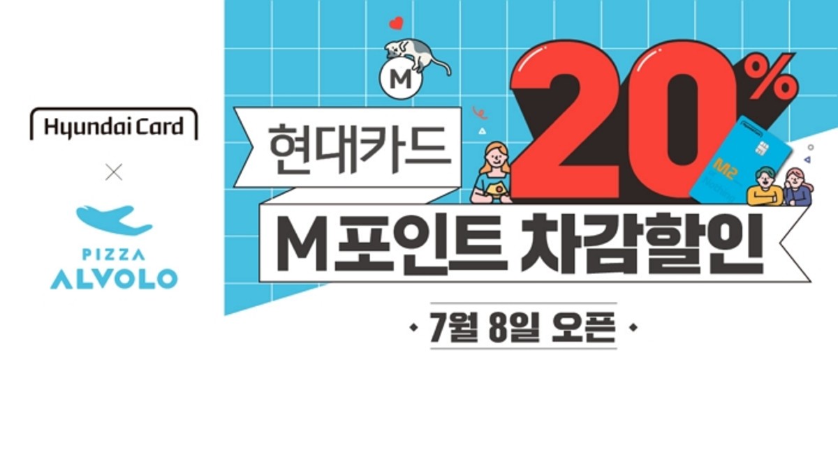 피자알볼로는 현대카드 결제 시 M포인트 차감을 통해 구매 금액의 20% 할인 혜택을 제공하는 프로모션을 진행한다고 밝혔다.