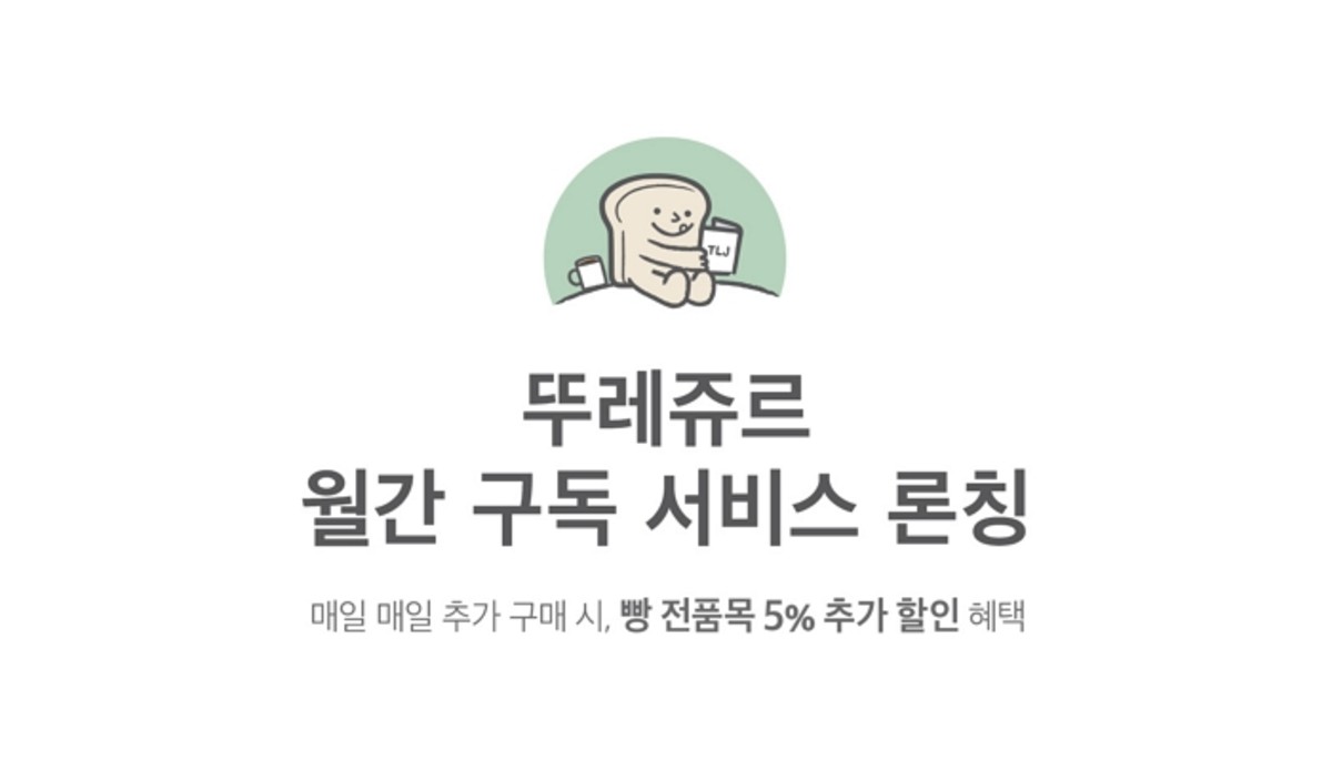 [인사이트] 천소진 기자 = CJ푸드빌이 운영하는 베이커리 뚜레쥬르가 월간 구독 서비스를 선보인다고 6일 밝혔다.