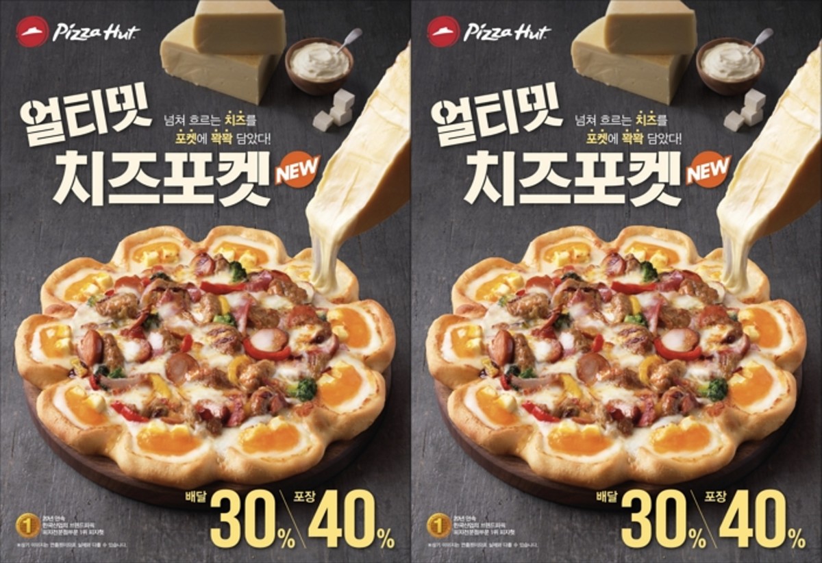 한국피자헛은 지난달 2일 스위스 명품 라끌렛 치즈, 부드러운 크림치즈, 쫄깃한 모짜렐라를 아낌없이 가득 담은 주머니 모양의 차별화된 엣지로 디자인된 프리미엄 신제품 '얼티밋 치즈포켓'을 출시했다.