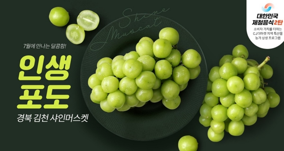 CJ제일제당 식품 전문몰 CJ더마켓에서 '7월에 만나는 달콤함! 인생 포도' 기획전을 통해 경북 김천의 샤인머스캣 포도를 판매한다.