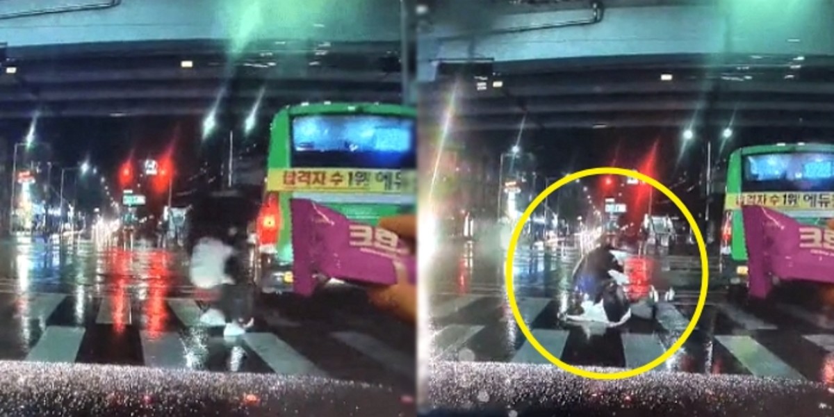[인사이트] 성동권 기자 = 비가 쏟아지던 지난 13일 우산을 쓴 채 뒤늦게 횡단보도를 건너던 보행자가 차량과 충돌하는 사건이 발생했다.