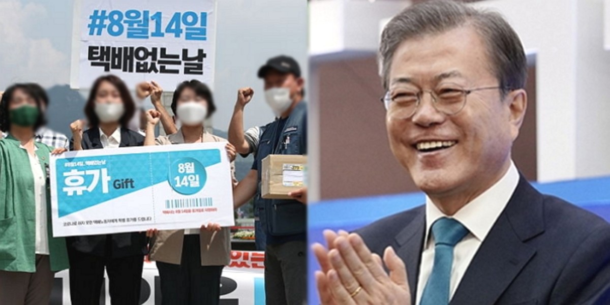 택배업계의 합의로 '택배 없는 날'이 지정된 다음 날, 문재인 대통령은 "사상 최초 택배 휴가의 날에 기사님들이 휴식과 재충전의 시간을 가질 수 있도록 응원해 달라"고 당부했다.