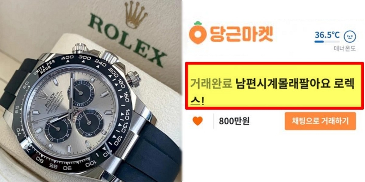 지난 18일 중고거래 사이트 당근마켓에는 "남편 로렉스 시계 몰래 팔아요"라는 제목의 판매글이 올라왔다.