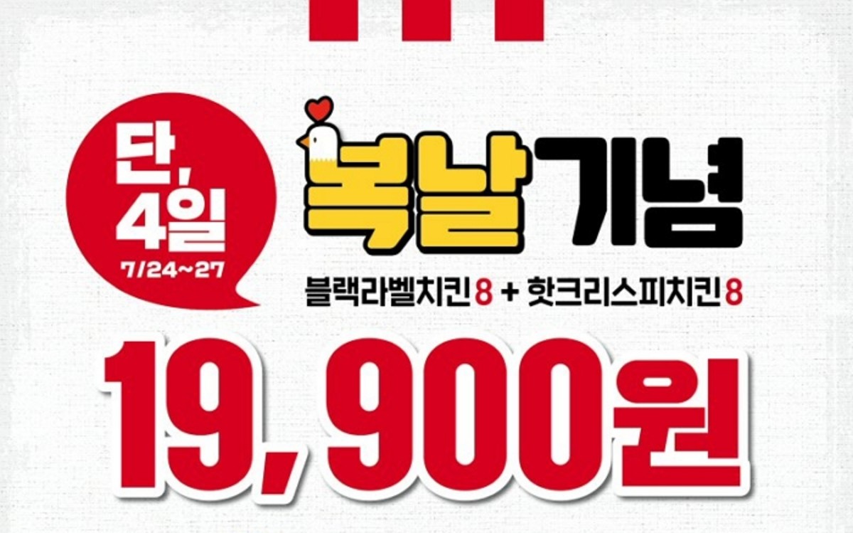 [인사이트] 천소진 기자 = KFC가 중복을 맞아 24일부터 오는 27일까지 나흘간 치킨 할인 프로모션을 진행한다.